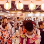 Enjoy authentic Japanese food while watching a traditional Bon Odori performance,